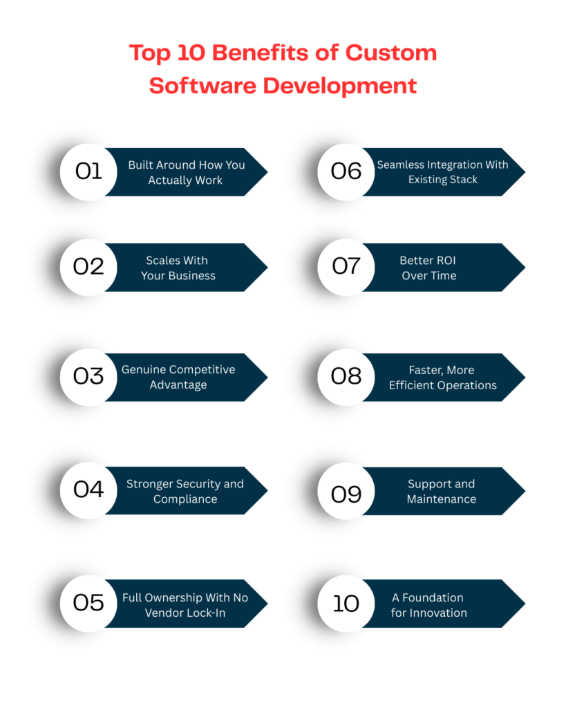 That’s the moment custom software benefits stop being a “nice to have” and become a genuine business decision. Here’s what makes the case: