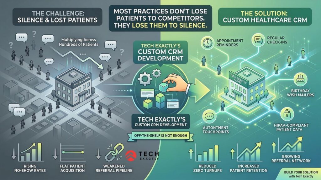 That’s where custom healthcare CRM software development comes in. And at Tech Exactly, we’ve built enough of these systems to know exactly where the build goes right and where it falls apart.