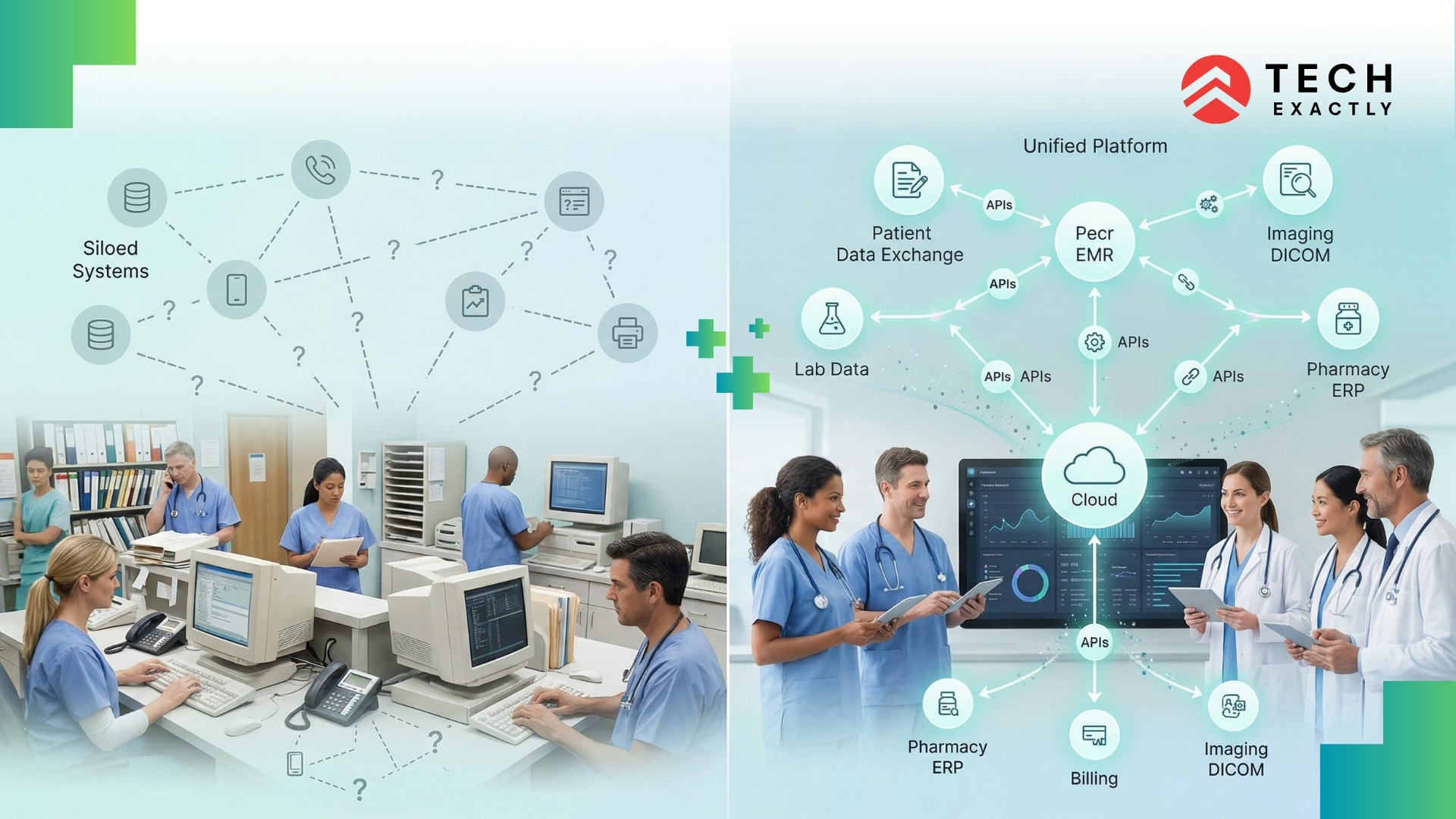 From what we have observed at Tech Exactly, working with healthcare organizations, the biggest problems are more than just the use of new technology. They often come down to: