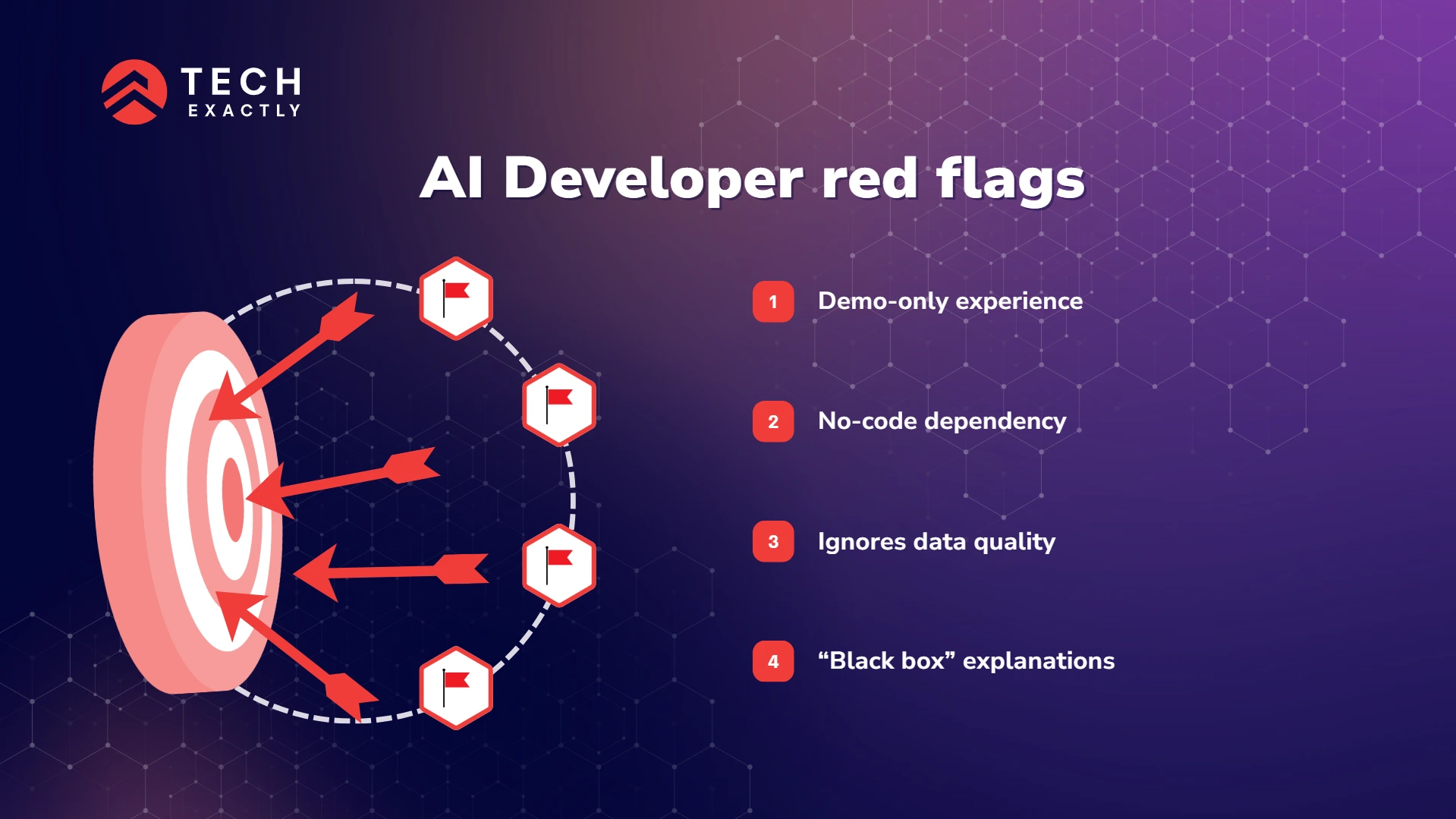 - Be cautious of warning signs such as demo-based experience, poor data handling practices, and overreliance on no-code tools.