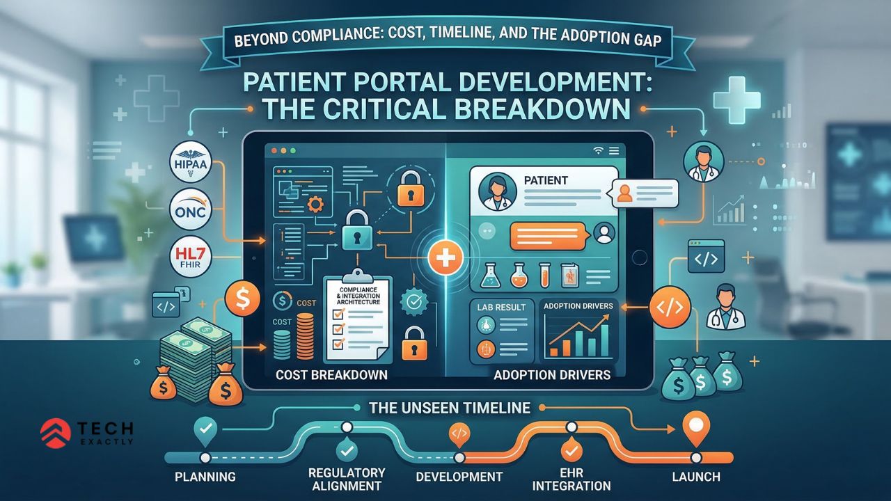 At Tech Exactly, we have been building healthcare applications — telemedicine platforms, EHR/EMR systems, remote patient monitoring apps, and, yes, patient portals — for more than a decade. This guide will cover everything you need to know before beginning patient portal development: the features that drive adoption, the compliance architecture that helps you avoid regulatory issues, what it realistically costs, and the timeline your stakeholders should expect.