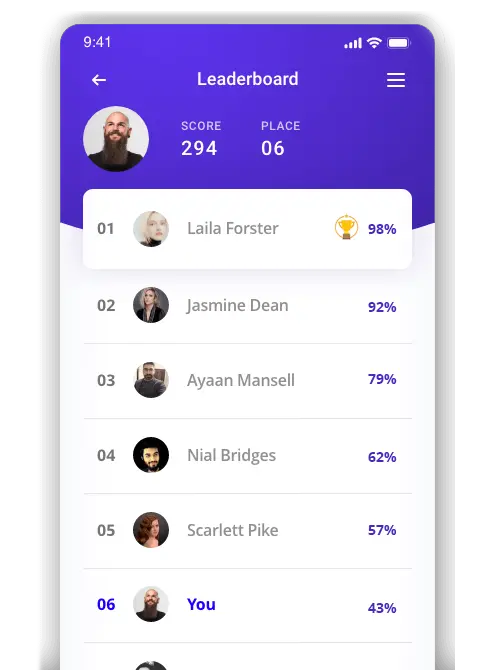 Break the ice with orientation quizzes that train and educate your employees. With the help of an app, you can set the score to a minimum % that each candidate must acquire to pass the quiz.